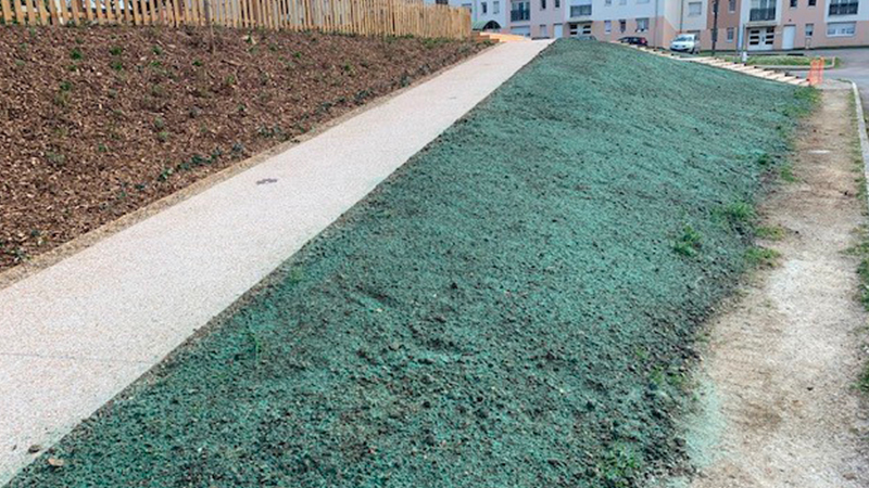 Dérivée de l'hydroseeding, l'hydromulching (ou semis par projection) est une technique efficace pour végétaliser les sols pauvres, les terrains en pente, à base de gazon ou de prairie.